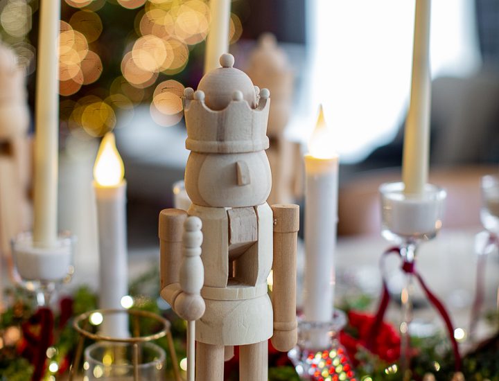 This has become one of my favourite Christmas traditions; a painting party. This year we had a Christmas nutcracker painting party and it was so much fun. I especially love how every person made it their own. I bought these wooden nutcrackers and set them all throughout the table. Candles and stickers to decorate … I used these cute ‘felt…