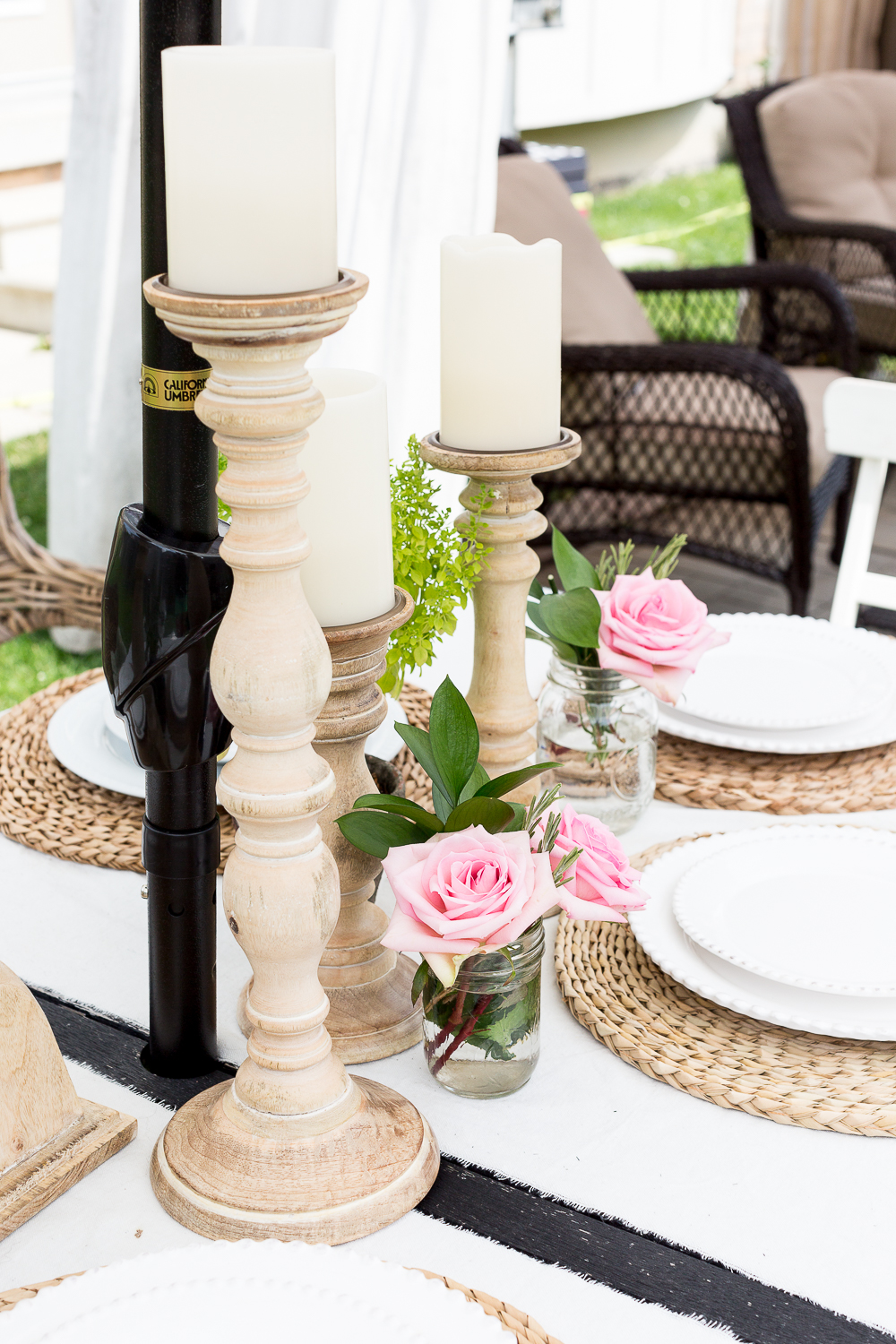 Here are Birch Lane’s turned candleholders with simple LED battery operated candles on top, so we didn’t have to worry about a breeze.