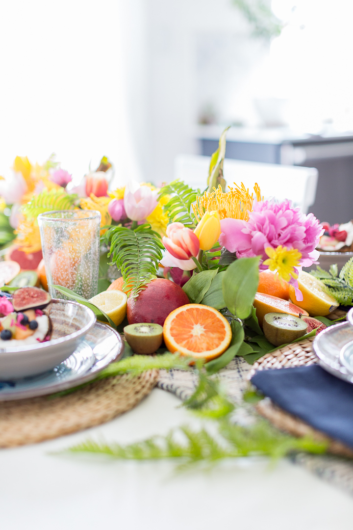 Hello friends. I hope you had a nice weekend. We’re in the process of doing a backyard makeover which unfortunately, it’s taking a little longer than expected. I’ve been missing my outdoor space but I hope that once it’s completed, it will have been worth the wait. In the meantime, I’m joining my friends in Styled Set Summer home Style blog tour, hosted by Lory. Today we’re sharing beautiful Summer tablescapes which I hope will inspire you. I decided to share a fun and colorful tropical fruit and floral tablescape.