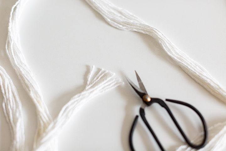 7. Glue a couple of pieces of string horizontally across the strands to make it cleaner.