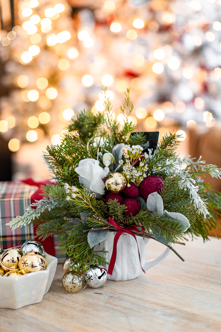 As you know, I love putting flower arrangements together and this small Christmas bouquet for a Gift Card is so adorable.