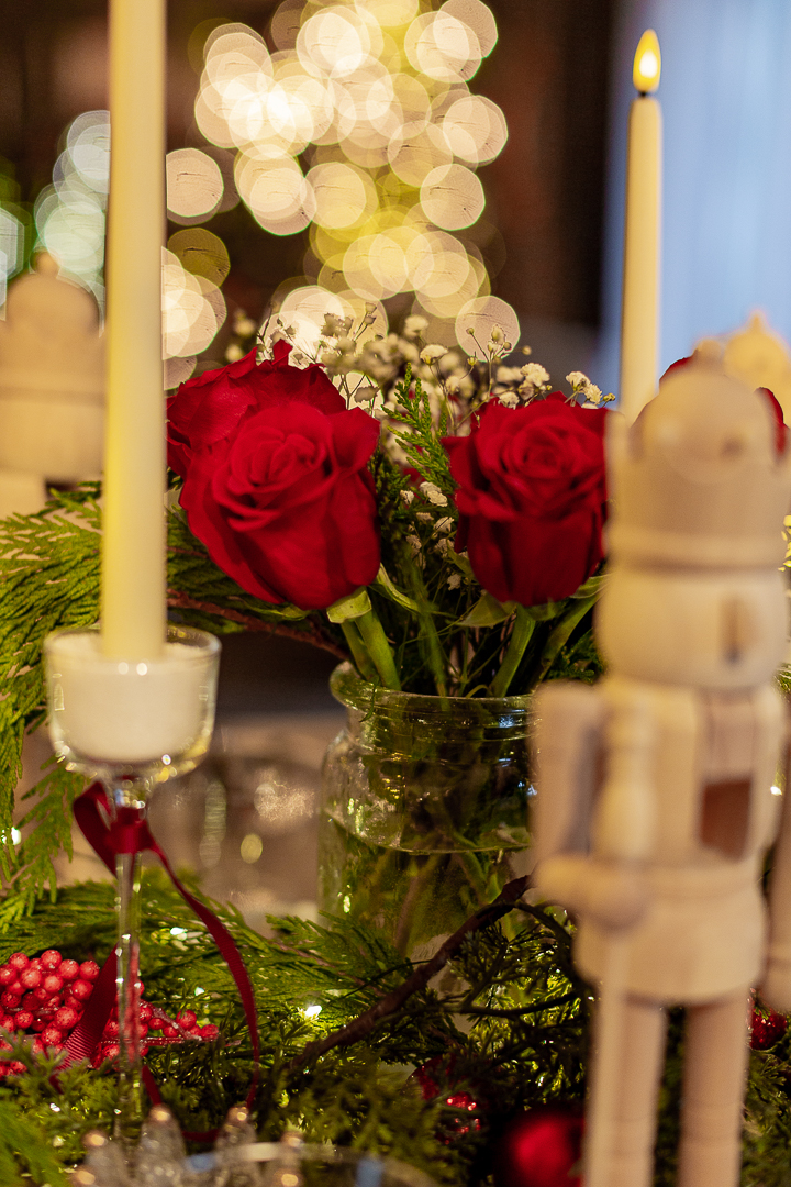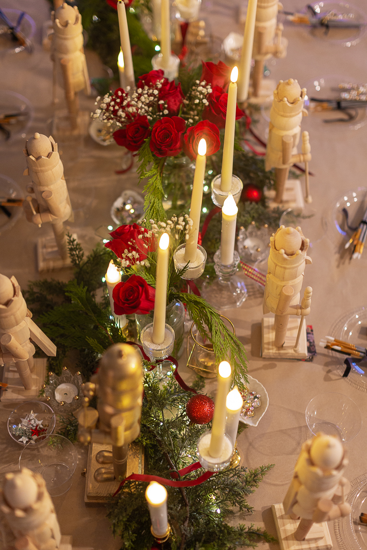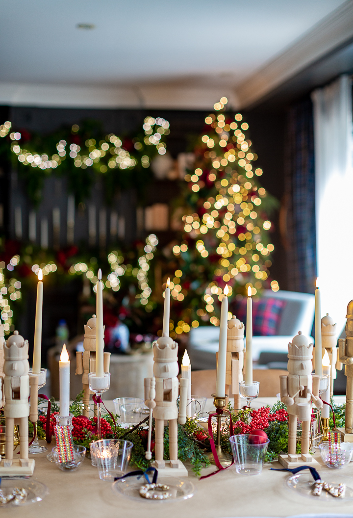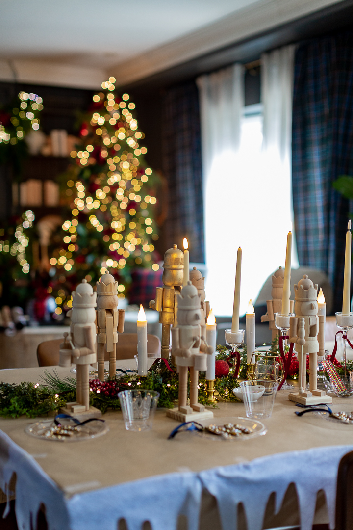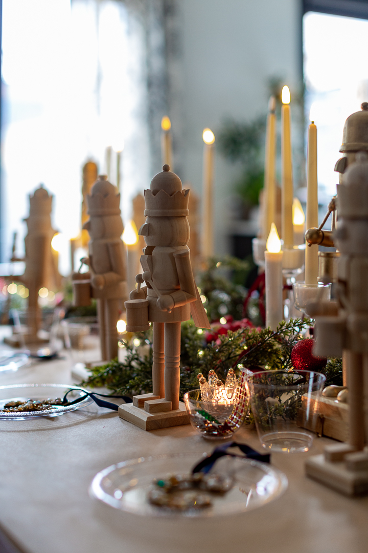 I bought these wooden nutcrackers and set them all throughout the table.