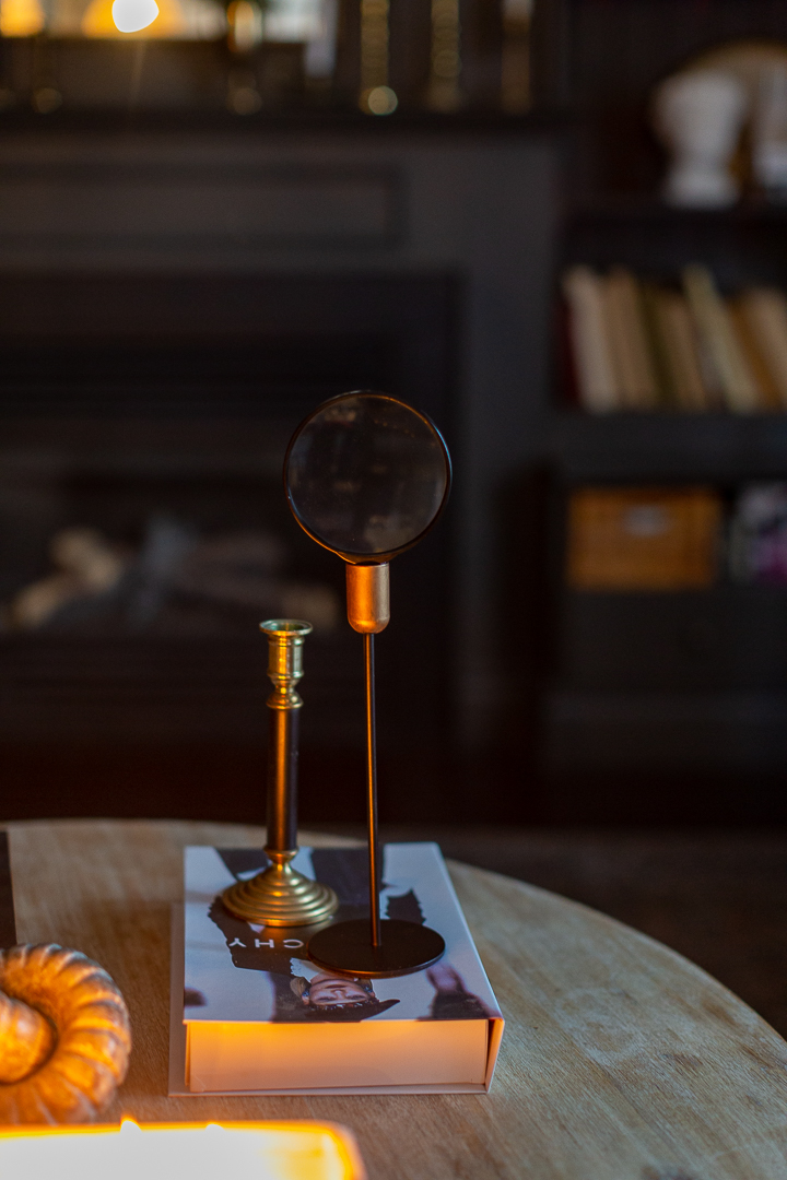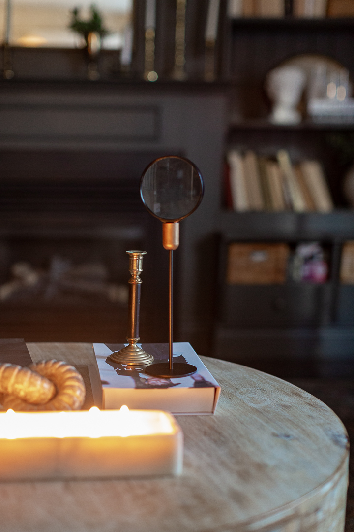 I want to start bringing in some natural elements soon but today I want to show you this super easy magnifying glass decorative item I made using Dollar Tree items.