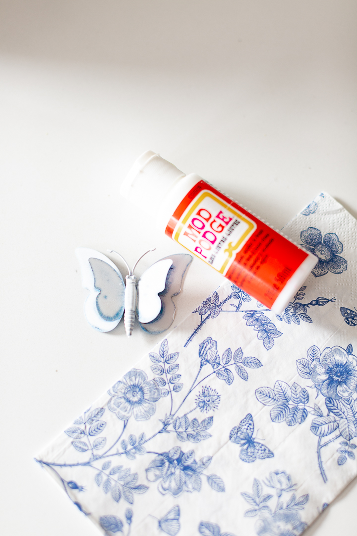 -I spray painted the butterfly with white spray paint. You can also use acrylic paint.