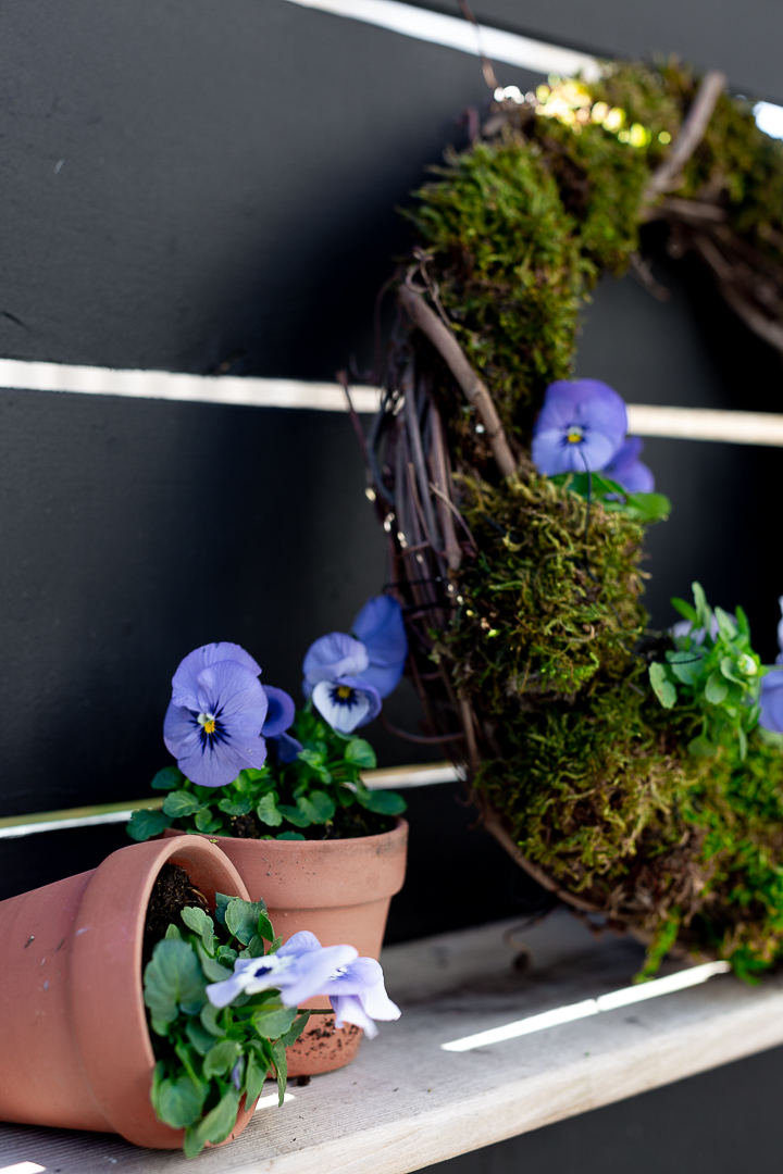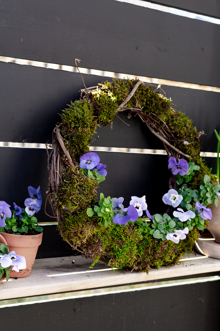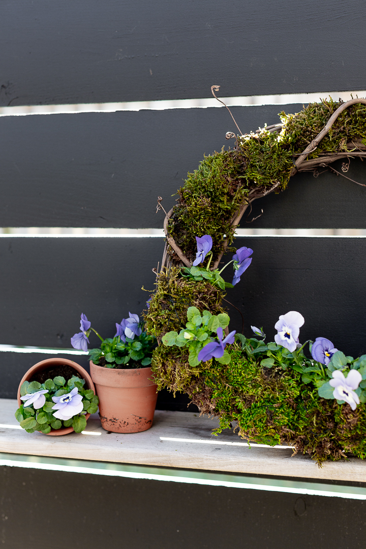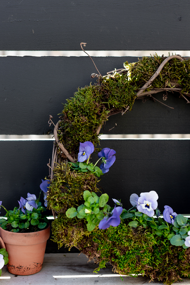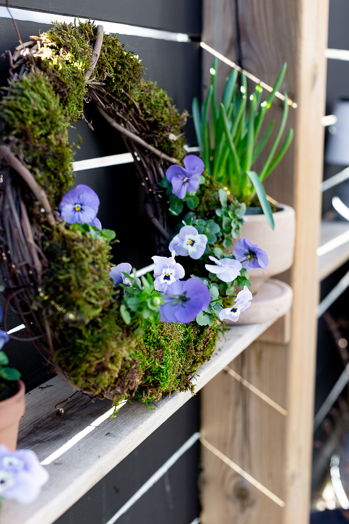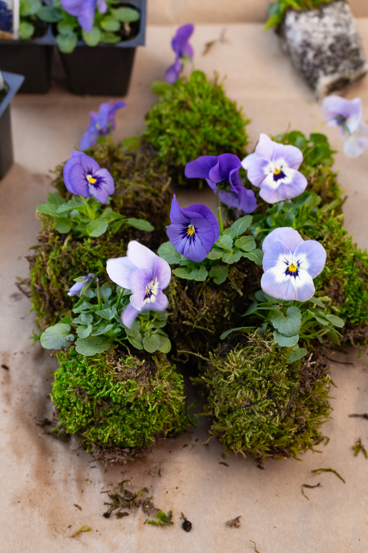 I then just used the same string to wrap the pansy ‘moss balls’ to the wreath…