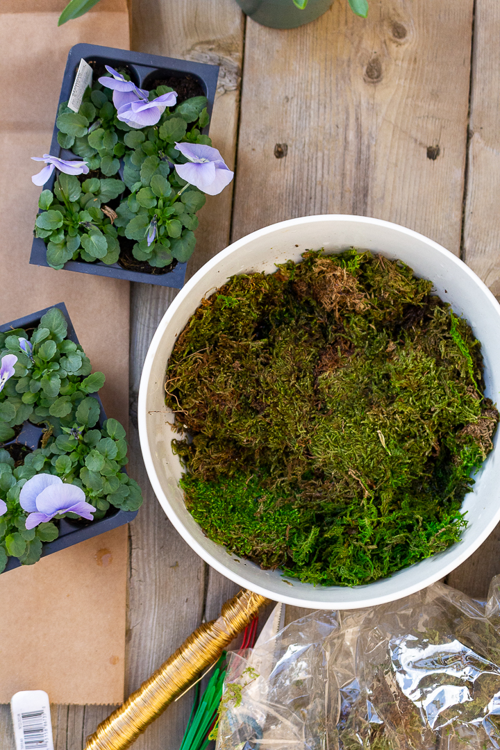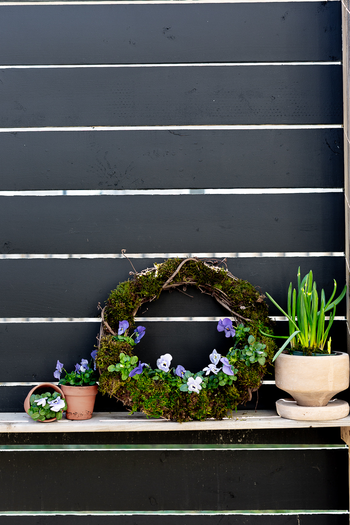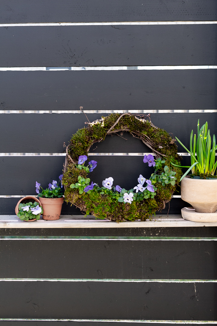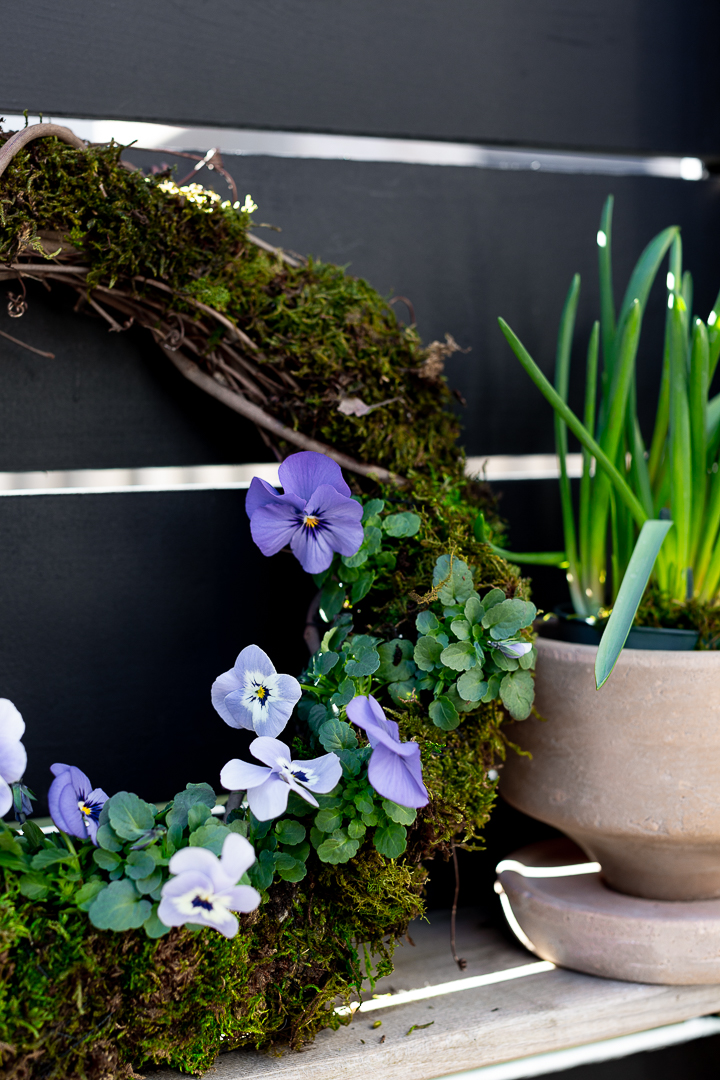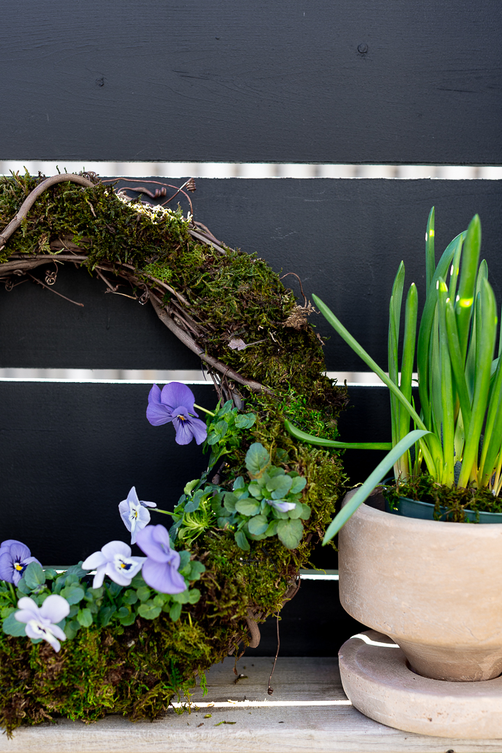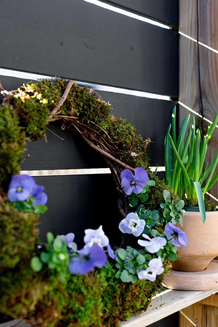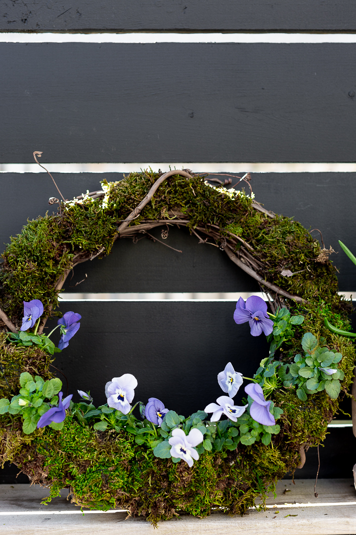 I then just used the same string to wrap the pansy ‘moss balls’ to the wreath…
