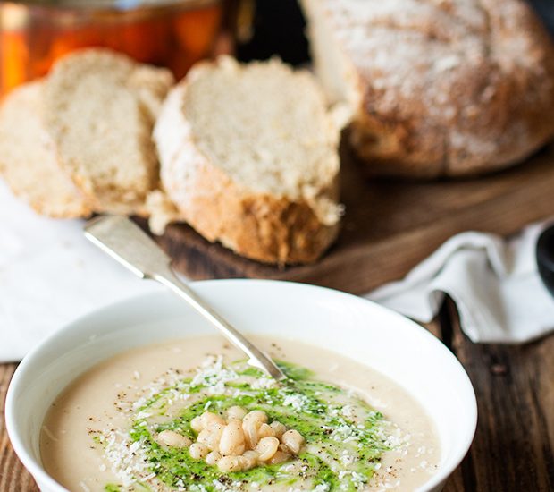 Haricot bean soup with parmesan and pesto
