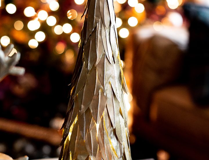 Hello friends. I hope you’re well. This little DIY Metal Tabletop Tree looks so pretty in person but doesn’t really translate well in photographs.I had done a similar craft several years ago. You can see it HERE. But this time I decided to make it out of tin. I used a Dollar Store tree as my base. I took a foil…
