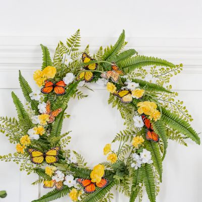 Spring Flowers and Monarch Butterfly Wreath