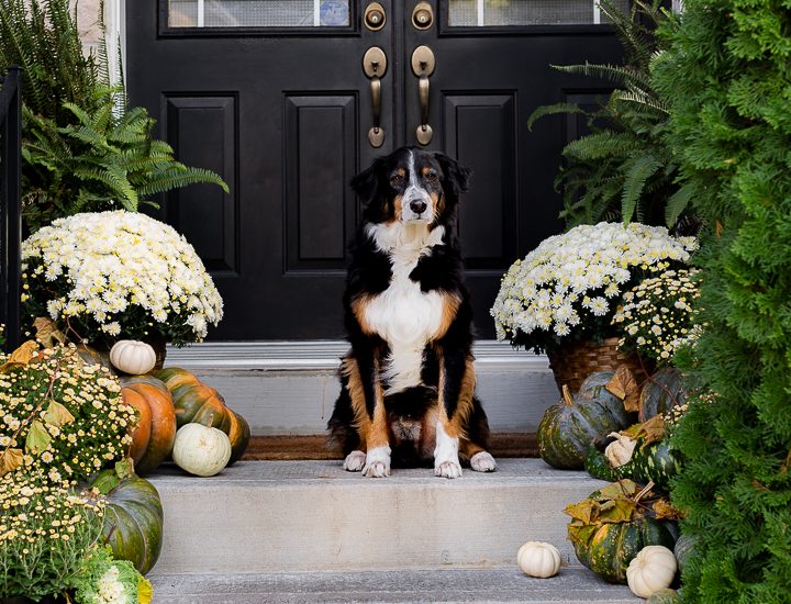 Hey friends. I hope you’re doing well. It’s been a rainy and gloomy fall day but I enjoy these quiet fall days. We went to the nursery a couple of weeks ago and got some fairy tale pumpkins to set up our fall porch. I decided to use more neutral tones this year… Some pretty white mums to tie in…