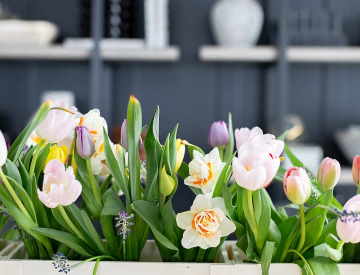 Hello again friends. Today I have a super duper easy DIY for Easter that I hope you will love. This Dollar Store wooden box centerpiece is so pretty and so easy to put together. I had to go the grocery store to get some groceries and picked up some tulips along the way. I simply took some wooden boxes from…