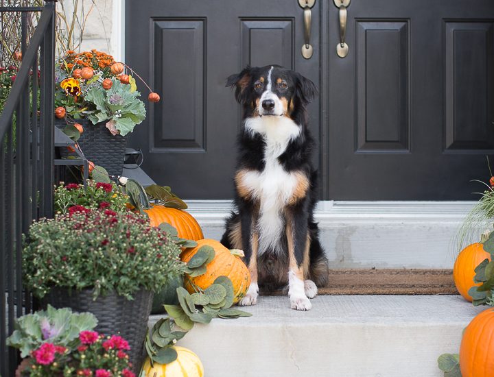 Hello again friends. Welcome back. I hope your week is off to a great start. Today I will be sharing our fall front porch 2019. Setting up the front porch is one of my favourite things to decorate in our home. And of course taking pictures of our Brody is always a highlight. Such a sweet smiley guy…:) Before I…