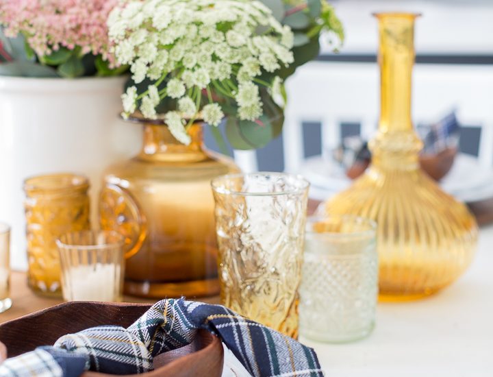 Hi…I hope your week is off to a great start! I have yet another fall tablescape for you. This one I’m calling thrifted fall tablescape. Because most of the items are thrifted. Similar to THIS one I did a couple of years ago. I went looking for wooden bowls and some amber glasses. Lucky for me, I found them! …