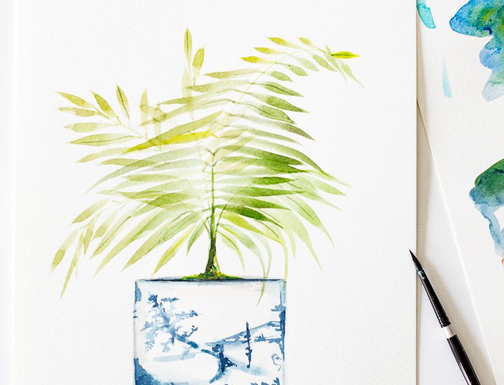 Hello friends. Happy Tuesday. I hope your week is off to a great start. It’s been raining non stop and I think it’s supposed to rain for the rest of the week. 🙁 I’m so looking forward to sunny summer days. Which brings me to today’s little palm in a Chinoiserie vase printable. I hope you like it. I didn’t…